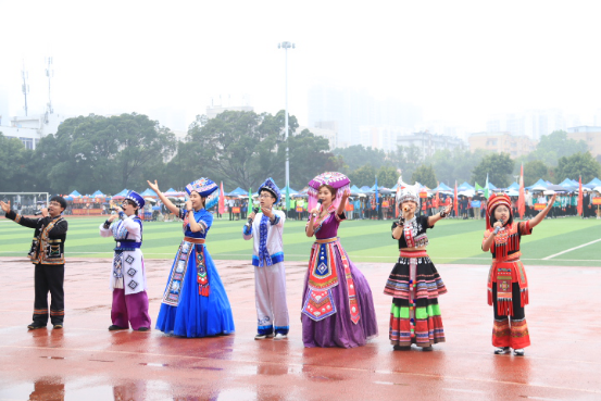 合着《幸福山歌》的节奏,舞狮、竹竿舞等民族传统节目纷纷闪亮登场。