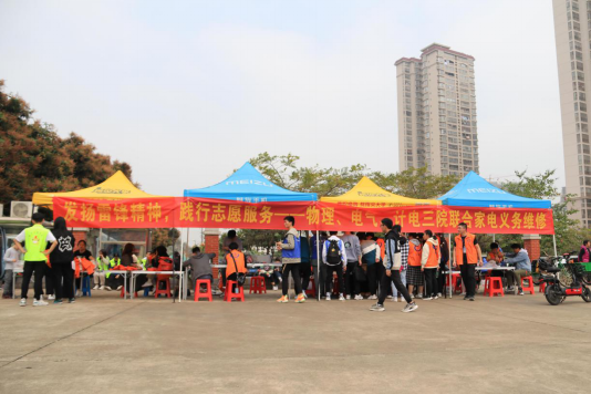 三月的春风暖暖吹过,我们又迎来了学雷锋热潮。为进一步传承和弘扬雷锋精神,践行社会主义核心价值观,传递正能量,在纪念毛泽东主席题词“向雷锋同志学习”58周年之际,广西大学beats365(中国区)-唯一官方网站与物理科学与工程技术学院、计算机与电子信息学院于3月13日在东高居民楼晒谷场开展了家电义务维修活动。