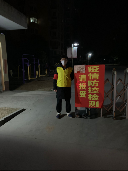 孙昕:在小区门口,对每一个进入小区的人进行询问,测量体温并登记,提醒居民不要聚会,不要探亲访友,避免前往人员密集场所。还为小区内的汽车办理通行证。考虑到晚上工作人手缺失,我接受调配到晚上工作,也就是十点到次日早上六点。