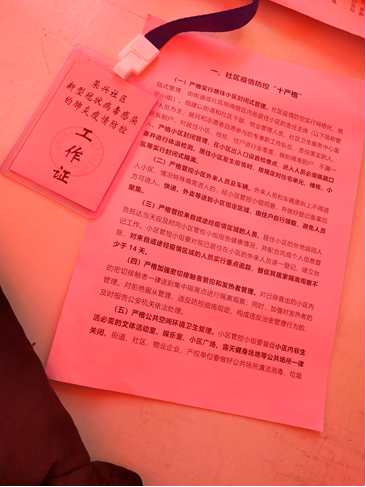报名成功后,黎亚便走在了志愿服务的路上。她在镇抗疫小组的领导下,2月17日开始在社区卡点执勤,配合相关部门进行出入口的消毒,严格管理社区人员进出,对出入人员车辆进行登记,检查工作证,并对外出返回人员进行体温测量。严格实行一户两日一人外出政策,努力为控制疫情做贡献。