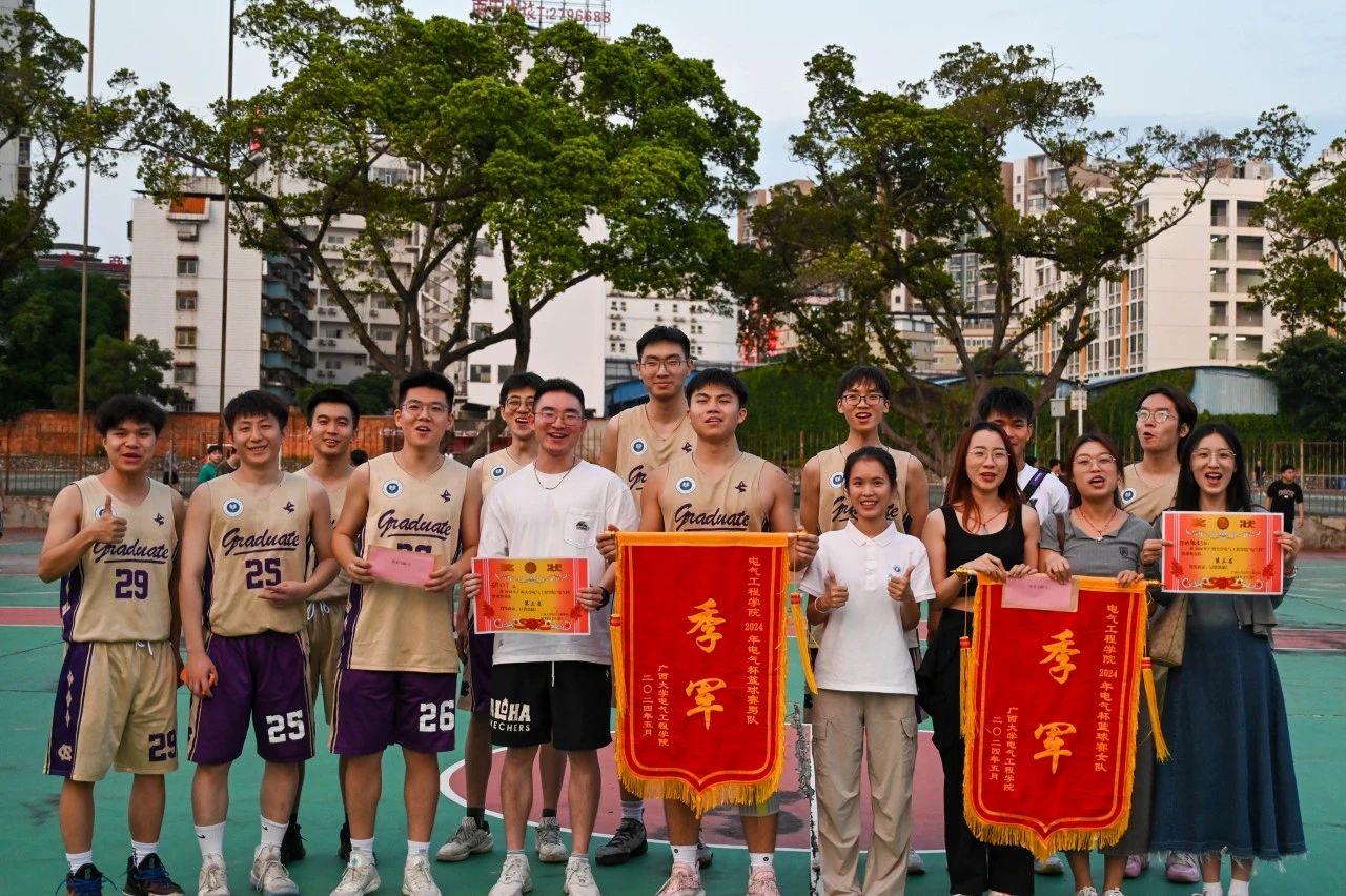 5月12日下午,我院“电气杯”篮球赛男队总决赛和季军争夺赛同时在东校园体育场开赛,学院团委副书记李娟、辅导员李楠、冯敏、林思维到现场为参赛队伍加油助威,并为获胜队伍颁奖。 男队总冠军争夺赛的两支队伍分别是:研226和研223班联队、电自215和自动化211班联队。他们在为期两个多月的赛程中奋力拼搏,从小组赛中杀出重围,在淘汰赛中一路高歌猛进,闯进总决赛,角逐最终的荣耀。与此同时,研227班和电自201班两支队伍展开季军争夺赛。 哨声响起,双方运动员展开激烈争夺。参赛队员们紧密配合,你争我夺,防守反攻,在球场上尽情挥洒汗水。双方势均力敌,现场比分一度打平,气氛愈发紧张。发球、运球、传球、攻防转换、单人突破,篮板、抢断、盖帽……场上的一举一动牵动着场下观众的心弦,队员们争分夺秒,紧抓进球机会,引起观众们欢呼喝彩。 经过近一个小时的激烈角逐,研226和研223班联队以更加紧密的配合和精准的投篮斩获本次比赛冠军,电自215和自动化211班联队获得亚军,研227班获得季军。 冠军 亚军 季军 八强 据悉,本次比赛男子共32支队伍,女子3支队伍,总计参赛球员250多名。比赛虽告一段落,但同学们在赛场上团结拼搏、挥洒青春汗水的身影被定格下来,成为前行路上宝贵的经历。希望同学们继续弘扬体育精神,彰显青春力量,走下网络,走出宿舍,走向操场,强身健体! 最终获奖名单 男队 冠军:研226和研223班联队 亚军:电自215和自动化211班联队 季军:研227班 八强名单:电自201班、电自202和电自205班联队、研234和研236班联队、电自203班、电气222班 女队 冠军:本科联队 亚军:要强队 季军:你的强来了队