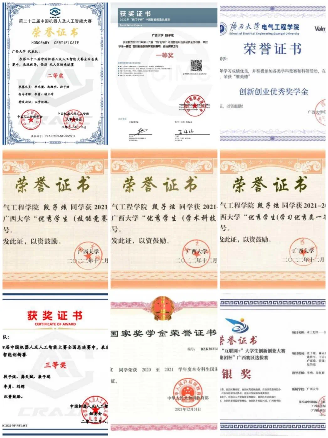 岁月如梭,当初踏入广西大学那刻依然历历在目,转眼已至毕业,感慨万千,感谢本科中遇到的每位志同道合的同学、朋友和帮助我的老师以及父母亲人的支持。另外,学弟学妹们可以在低年级多多了解自己未来的职业规划,清晰的目标会让你在未来做选择的时候更有方向感。祝大家一切顺利,前途似锦!