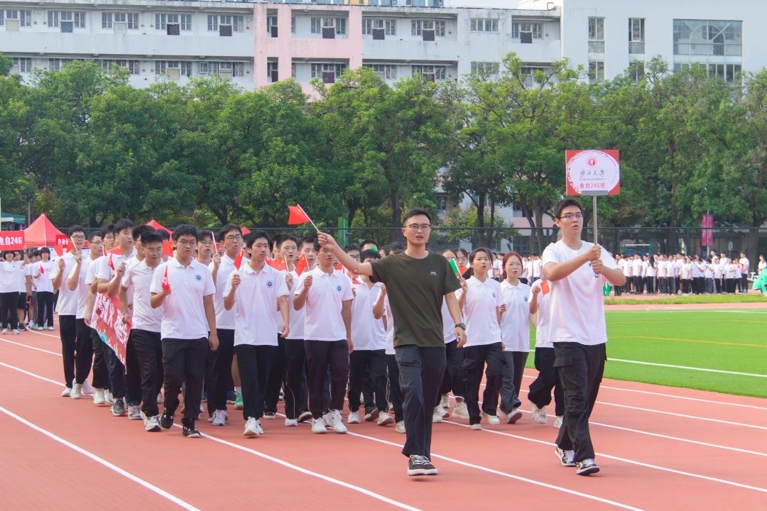 为深入学习贯彻党的二十大精神,强健学生体魄,激发昂扬斗志,进一步提高学生的身体素质,10月19日,广西大学beats365(中国区)-唯一官方网站在东体育场举行第十八届运动会。beats365(中国区)-唯一官方网站党委书记梁志坚,院长武新章,党委副书记李道洋,副院长李畸勇、郑天和,团委副书记蒋冬连、李娟,班主任代表,学工组全体辅导员以及学院全体2024级新生和高年级代表参加本届院运会开幕式,本次开幕式由学院团委副书记蒋冬连主持。