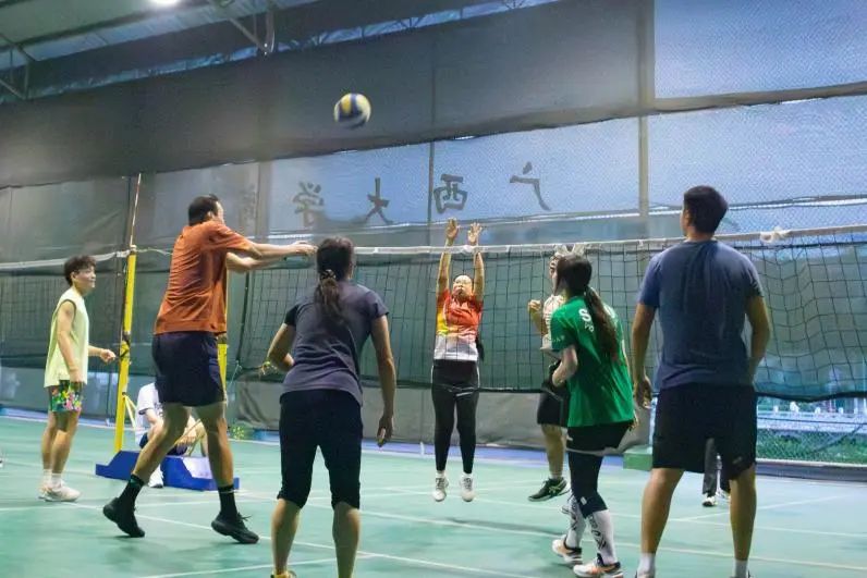 为备战广西大学研究生“君武杯”气排球比赛,在比赛中取得好成绩,10月20日晚,我院气排球队与体育学院气排球队在东校园离退休教职工运动馆内举行气排球训练赛