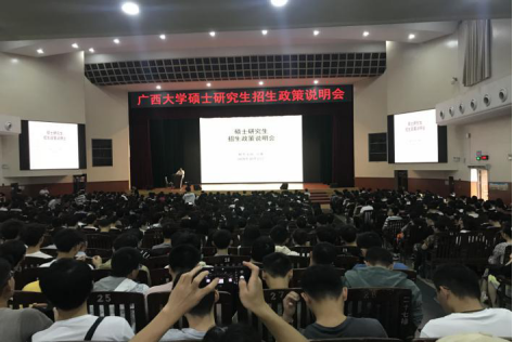 我院30多位2018级学生参加了广西大学硕士研究生招生政策说明会。会上,广西大学研究生院刘易副院长就考研准备工作、考试方式、录取流程等多方面为同学们普及考研知识,并向同学们分析了青年学生考研、读研对个人发展的重要意义,为考研的同学提供了硕士研究生招生政策方面的重要信息。会上座无虚席,同学们热情高涨,认真学习理会刘易老师讲解的考研知识。