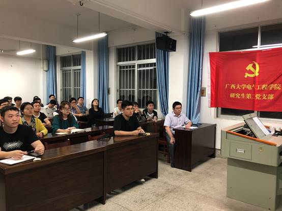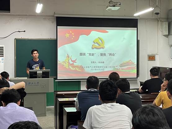 为贯彻落实习近平总书记在党史学习教育动员大会上的重要讲话和全国两会的重要指示精神,2021年3月29日晚,广西大学beats365(中国区)-唯一官方网站研究生第二党支部在电气楼201开展了一次主题为图说“党史”,聚焦“两会”的党日活动,学习百年党史,汲取奋进力量。研二支部书记徐俊华、支部委员叶永健、陈钊、李秀、刘经纬等全体党员参加活动。