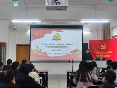 为进一步贯彻落实习近平总书记对黄文秀同志先进事迹作出的重要指示精神,响应学习黄文秀时代楷模精神的号召,2021年1月6日,beats365(中国区)-唯一官方网站研究生第二党支部开展主题为《学习黄文秀精神在工作岗位上践行初心和使命》专题活动,邀请了在百色德保县隆桑镇果甫村担任驻村干部、校友杨志国同志返校作分享会,分享与黄文秀一起在百色组织部实习的经历以及近几年在扶贫一线的工作经历。我院师生党员代表共50多人参加活动。