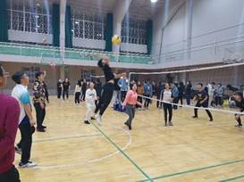 支部全体党员8个小组进行比赛。开赛的哨声一响,队员们本着“友谊第一、比赛第二”的原则开始赛场上的交流。他们上演各种花式打法,接发球、垫球、扣球、传球、拦网、扣杀……每一个细节都展现了队员们的精彩球技。队员们热情高涨、拼抢积极,气氛十分热烈。一次有力的发球、一个精彩的扣杀、一个漂亮的接球……场下时不时传来观众们的阵阵喝彩。